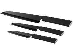 Эксклюзивный набор ножей Marksman. В набор входит поварской нож 8", зубчатый нож 5" и нож для овощей 3,5". Все ножи сделаны из нержавеющей стали, на каждое лезвие нанесено специальное покрытие, края остро наточены для максимального удобства при резке. Рукоятки выполнены из ТПР со шлифованным металлическим наконечником.