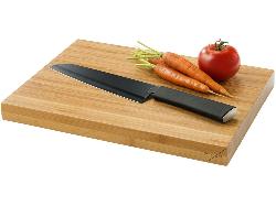 Необходимый набор для приготовления блюд на кухне. Прочная бамбуковая разделочная доска и поварской нож 8" из нержавеющей стали, на каждое лезвие нанесено специальное покрытие, края остро наточены для максимального удобства при резке.