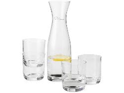Графин Prestige с 4 бокалами. Стильный стеклянный графин с 4 бокалами под цвет графина. Емкость графина – 1000 мл, емкость бокала – 370 мл. Можно мыть в посудомоечной машине. Предлагается в защитной коробке Paul Bocuse. Эксклюзивный дизайн. Стекло.