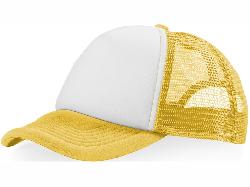 Кепка из 5 панелей Trucker. Оригинальная кепка на окружность головы 58 см с передней поролоновой частью, пластиковой сеткой сзади и пластиковой застежкой. Эта кепка полностью соответствует требованиям к соединениям AZO, формальдегиду и ПХФ. Полиэстер и поролон.
