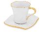Красивая чайная пара из белого фарфора с золотой каймой – отличный выбор для любителей кофе и небольших порций ароматного чая.