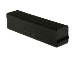 Этот неброский футляр был создан специально для очков Moleskine, однако также подойдет для ручек, карандашей и других небольших предметов. Внешние характеристики: черная эластичная застежка; тисненый логотип на задней панели. Внутренние характеристики: черная велюровая подкладка. Материал: матовый черный полиуретан на тканевой основе.