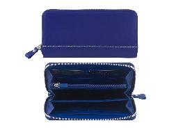 Великолепный подарок для дамы – или особый повод себя побаловать. Храните деньги и кредитные карты в этом прекрасном авторском бумажнике из кожи синего цвета от Swarovski. Вместительный бумажник украшен линией кристаллов белого цвета. Имеется отделение для монет на молнии и восемь карманов для кредитных карт.