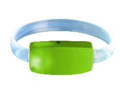 Многофункциональный браслет с белым светодиодом. Кнопка для мигающего света (левое положение) и непрерывного света (крайнее правое положение). Для выключения светодиода установите кнопку в среднее положение. Батарейки включены.