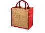 Джутовая подарочная сумка Chennai. Джутовая сумка с ламинированным открытым основным отделением и вставкой. Хлопковые ручки высотой 11,5 см. Джут.