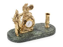 Необычный аксессуар подойдет для подарка работающим в сфере пожароохраны и МЧС. На приборе размещена миниатюрная фигура спасателя и огня. Настольный прибор дополнен держателем для ручки и часами.