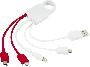 Кабель для зарядки Squad 4-в-1. Зарядник USB с пятью кабелями коннекторами; адаптер USB, два микро USB адаптера, мини USB адаптер и съемный адаптер Apple® Lightning™ сертифицированный MFi. Только адаптер микро USB и Lightning™ поддерживают передачу данных. АБС пластик.