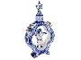Оригинальный подарок для людей, интересующихся космосом, а также связанных с ракетостроением. Уникальный фарфоровый штоф с фигуркой космонавта и российским гербом выполнен в гжельской технике росписи.