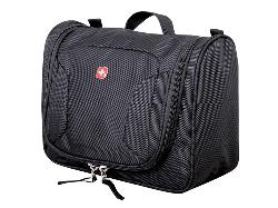 Несессер включает в себя: -основное отделение на молнии включает в себя: карман на молнии, сетчатый карман на молнии, два открытых кармана, четыре эластичных держателя для емкостей, два боковых кармашка и крючок для подвеса, - ручка для переноски.