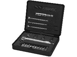 Набор из 20 инструментов в маленькой коробочке. В комплекте три отвертки, 10 насадок в холдере: три размера Philips (PH0, PH1, PH2) три плоских (4,5,6 мм), три звездочкой (Т10, Т15, Т20) и 1 адаптер; четыре ключа ( 7, 8, 9, 10 мм), один ножик, ручка и коннектор. Упакован в коробку STAC. АБС пластик.