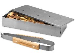 Набор для барбекю Pitts. Набор состоит из двух предметов: коробка и щипцы. Помесите предварительно вымоченные щепки в коробку и разместите ее на гриле (размер 23х9.5х 4 см). Ваше мясо или рыба будут пахнуть дымом, превратив обычное блюдо в изысканную еду для гурманов. Используйте щипцы чтобы переворачивать рыбу или мясо. Набор упакован в коробку Seasons. Эксклюзивный дизайн. Нержавеющая сталь и дерево.