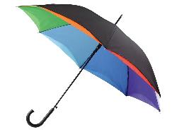 Верхняя поверхность полуавтоматического зонта-трости имеет белый клин, на который можно нанести достаточно крупное изображение. Внутренняя сторона купола окрашена в цвета радуги и чуть больше внешней, таким образом, из-под черного купола выглядывают яркие радужные блики.
