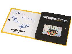 Набор известной дизайнерской студии ACME представляет их популярную серию The Beatles Collection и состоит из ручки-роллера и визитницы. Материал-латунь, рисунок - шелкография, покрытие - лак. В комплект входит стержень - роллер немецкой фирмы Schmidt, цвет черный. Коллекция выпущена ограниченной серией.