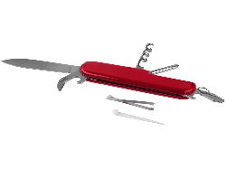 Карманный 9-ти функциональный нож Emmy. Карманный нож с отверткой Philips, плоской отверткой, открывалкой для банок и для бутылок, штопором, ножом для писем, пинцетом, зубочисткой и ножиком. В комплекте колечко для ключей. АБС пластик.