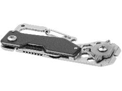 Многофункциональный инструмент Teron. Легкий многофункциональный инструмент с ножиком, карабином, линейкой, открывалкой, 4-мя шестигранными ключами, спицевым ключом, гвоздодером, 1 плоской отверткой, 1 маленькой и 1 большой отвертками Philips. Упакован в подарочную коробку Elevate. Алюминий.