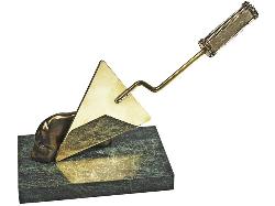 Оригинальный статусный подарок в виде строительного мастерка. Станет приятным подарком для руководителя строительной компании или презентом на новоселье. Подставка статуэтки выполнена из керамогранита зеленого цвета. Сам мастерок изготовлен из металла с золотым напылением. Настольный прибор упакован в коробку из картона. Вес прибора с упаковкой 550 грамм