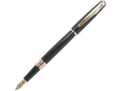 Ручка перьевая SECRET с колпачком и изысканной гравировкой на кольце. Перо - нержавеющая сталь с позолотой, наконечник Iridium point, который обеспечивает легкость и гладкость письма в зависимости от силы нажатия на перо. Пишущий узел среднего размера M. Комплектуется двумя синими чернильными картриджами.