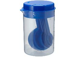 Измерительный набор из 7 предметов. Измерительный набор включает 0,5 литровый контейнер с крышкой, с опциями процеживания, наливания или закрытия контейнера. Внутри контейнера - мерные ложки. Полипропилен.