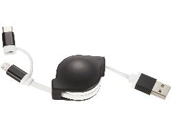 Набор кабелей Triple 3 в 1. Выдвижной кабель 3 в 1 состоит из USB типа С и адаптера 2 в 1 для Apple iOS и Android. Все кабели поддерживают передачу энергии и данных. АБС пластик.