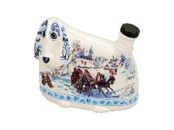 Вам нужен настоящий подарок в русском стиле? Нестандартный и очень душевный подарок штоф в виде собаки, с изображением традиционной русской забавы – катание на тройке. Роспись штофа выполнена в духе традиционного народного промысла. Штоф изготовлен из высококачественного фарфора. Превосходное мастерство росписи обеспечит долгое использование данного штофа. Объем штофа 500 мл. Упаковка – подарочная коробка из дизайнерской бумаги синего цвета с металлизированными наклейками.