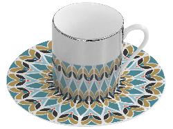 Чайная пара из чашки и блюдца в подарочной упаковке. Набор изготовлен из высококачественного фарфора, на блюдце нанесен оригинальный геометрический рисунок, который отражается на поверхности чашки и создает интересную иллюзию. Чайная пара «Фэнтэзи» может стать оригинальным подарком к любому празднику. Стильный и, одновременно, таинственный внешний вид набора не оставит вас равнодушным.