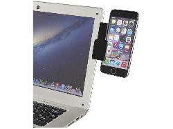 Клип коннектор для ноутбука. Прикрепите клип к краю ноутбука и телефон можно будет расположить с другой стороны, чтобы удобно использовать его во время работы на ноутбуке. Очень удобно для видео звонков, в то время как на ноутбуке выполняются другие задачи. Пластик.