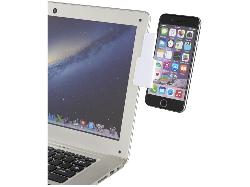 Клип коннектор для ноутбука. Прикрепите клип к краю ноутбука и телефон можно будет расположить с другой стороны, чтобы удобно использовать его во время работы на ноутбуке. Очень удобно для видео звонков, в то время как на ноутбуке выполняются другие задачи. Пластик.