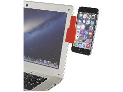 Клип коннектор для ноутбука. Прикрепите клип к краю ноутбука и телефон можно будет расположить с другой стороны, чтобы удобно использовать его во время работы на ноутбуке. Очень удобно для видео звонков, в то время как на ноутбуке выполняются другие задачи. Пластик.