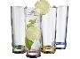 Стеклянный набор Rocco из 4 предметов. Яркий цветной набор для холодных напитков из 4 предметов. Объем одного стакана 270 мл. Можно мыть в посудомоечной машине. Упакован в коробку Avenue. Стекло.