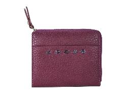 Кошелёк состоит из двух отделений. Первое отделение закрывается на кнопку, включает в себя: два отделения для купюр, три отделения для кредитных карт, одно отделение с прозрачным окошком, два скрытых боковых кармана. Второе отделение закрывается на молнию, разделяется перегородкой и предназначено для мелочи.