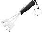 Кабель для зарядки «3-в-1» имеет 1 тип C, 1 USB тип A и 2-в-1 двухконтактный кабель для устройств Apple iOS и Android. Он светится во время зарядки, а также поставляется с цепочкой для ключей.