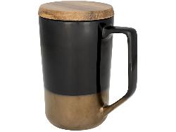 Керамическая кружка Tahoe для чая и кофе с деревянной крышкой, черный