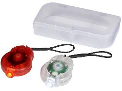 Велосипедный фонарь Zeta в футляре, 2 шт. Комплект из двух велосипедных фонарей: красный и белый светодиодные фонари с ремешком для крепления. Поставляется в пластмассовом футляре. Батарейки включены в комплект. ПП-пластик.