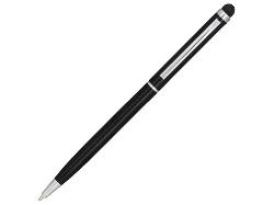 Алюминиевая шариковая ручка Joyce. Тонкая алюминиевая шариковая ручка с поворотным механизмом и стилусом. Алюминиевый корпус с металлическим зажимом и кольцом посередине, остальные элементы из пластика.