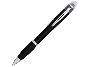 "Nash" - черная шариковая ручка со стилусом. При нажатии стилуса логотип подсвечивается в цвет стилуса. Включены 3 батареи LR41. ABS& AS plastic.