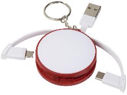 Зарядный кабель 3-в-1. Зарядный кабель 3-в-1 состоит из USB-шнура типа A, высокоскоростного шнура типа C и коннектора, который подходит для устройств iOS и Android. Для хранения кабель можно обернуть вокруг устройства. Поставляется с цепочкой для удобного ношения. Устройства на базе iOS заряжаются стороной без штырьков, устройства на базе Android — стороной со штырьками. ABS пластик.