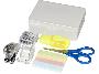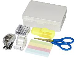 Набор канцелярских принадлежностей Beauxed. Канцелярский набор, состоящий из стикеров для заметок, ножниц, степлера со скобами, скотча и маркеров. Коробка из ПП.
