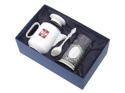 Чайный набор с подстаканником и фарфоровым чайником «ЭГОИСТ-М», серебристый/белый