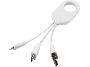 Кабель для зарядки «3-в-1». Кабель для зарядки Troop «3-в-1» с коннектором USB Type C и двойным совместимым коннектором «2-в-1» для устройств Apple® iOS и Android. Кабель оснащен карабином для удобного крепления к сумке. АБС-пластик.