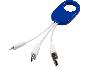 Кабель для зарядки «3-в-1». Кабель для зарядки Troop «3-в-1» с коннектором USB Type C и двойным совместимым коннектором «2-в-1» для устройств Apple® iOS и Android. Кабель оснащен карабином для удобного крепления к сумке. АБС-пластик.