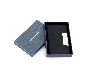 Визитница на магните выполнена из металла с искусственной кожей снаружи и черном бархатом внутри.