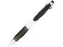 Шариковая ручка Nash «4 в 1». Шариковая ручка Nash с белым корпусом и цветным захватом и зажимом. Четыре функции в одной отличной ручке; красные, черные и синие чернила и стилус. Шариковая ручка с кнопочным механизмом и мягким держателем. АБС-пластик.