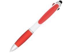 Шариковая ручка Nash «4 в 1». Шариковая ручка Nash с белым корпусом и цветным захватом и зажимом. Четыре функции в одной отличной ручке; красные, черные и синие чернила и стилус. Шариковая ручка с кнопочным механизмом и мягким держателем. АБС-пластик.