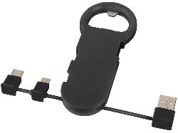 Открывалка для бутылок Phial с зарядным кабелем 3-в-1, черный