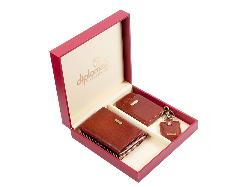 Подарочный набор: из компактного портмоне для хранения купюр, монет и пластиковых карт, а также небольшой визитницы и ключницы. Все аксессуары выполнены из натуральной кожи коричневого оттенка.