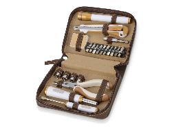 Классический мини-набор инструментов в чехле из кожзаменителя. Спокойное и в то же время изысканное сочетание цветов набора делает его неповторимым и органичным. Все инструменты изготовлены из прочного металлического сплава.