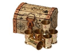 Вы были когда-нибудь в каюте капитана? Там обычно много стильных вещей, связанных с морем. Но что обязательно будет в каюте капитана, так это 6 небольших металлических стаканчиков с якорем с внешней стороны. Это специальные стаканчики для рома, но российские капитаны очень любят пить из них водку.