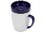 Белая керамическая кружка на 320 мл с яркого цвета ручкой - отличная основа под нанесение символики компании. В комплекте с кружкой идет крышка под цвет ручки, играющая также роль подставки и даже блюдца.