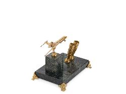 Настольный прибор с небольшой статуэткой в форме самолета станет превосходным подарком для руководителей туристических фирм и аэрокомпаний. На приборе предусмотрены два держателя для ручек. Прибор выполнен из натурального змеевика и бронзы.