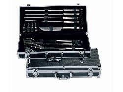 Набор для барбекю 12 предметов. 4 шампура, 4 шпажки для снятия шашлыка, нож для мяса, щипцы, вилка, лопатка. Шильд в комплекте. Набор упакован в подарочную коробку.